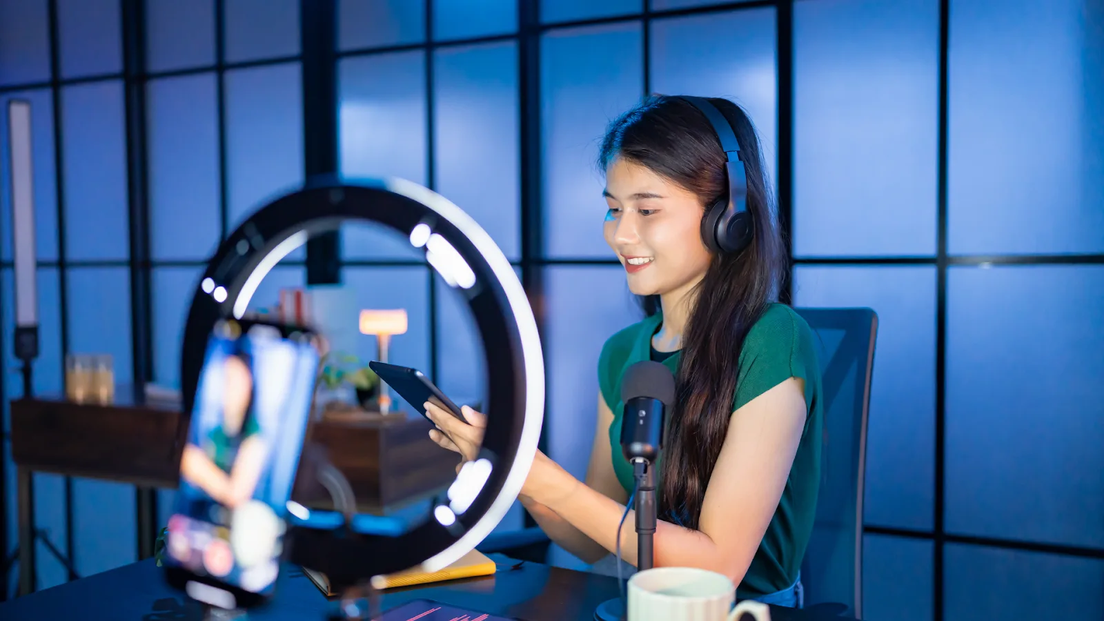 Micro influencer recording content with professional tools and brand support