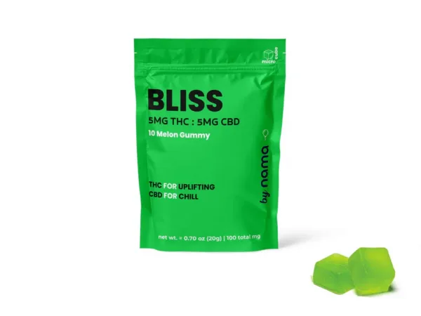 Bliss Gummies. Each vegan gummy is packed with 5 mg of CBD.