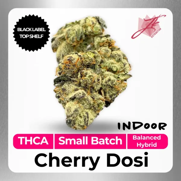 Cherry Dosi THCA Flower is part of our Black Label Top Shelf Collection, cultivated indoors and designed for seasoned enthusiasts who appreciate quality, flavor, and potency. This balanced hybrid features trichome-loaded buds and a layered aroma that satisfies both sweet and earthy flavor lovers.