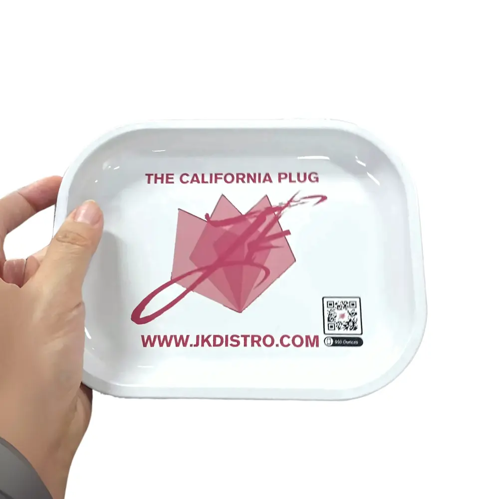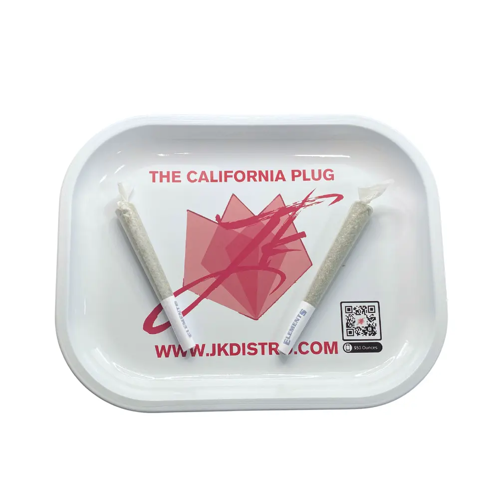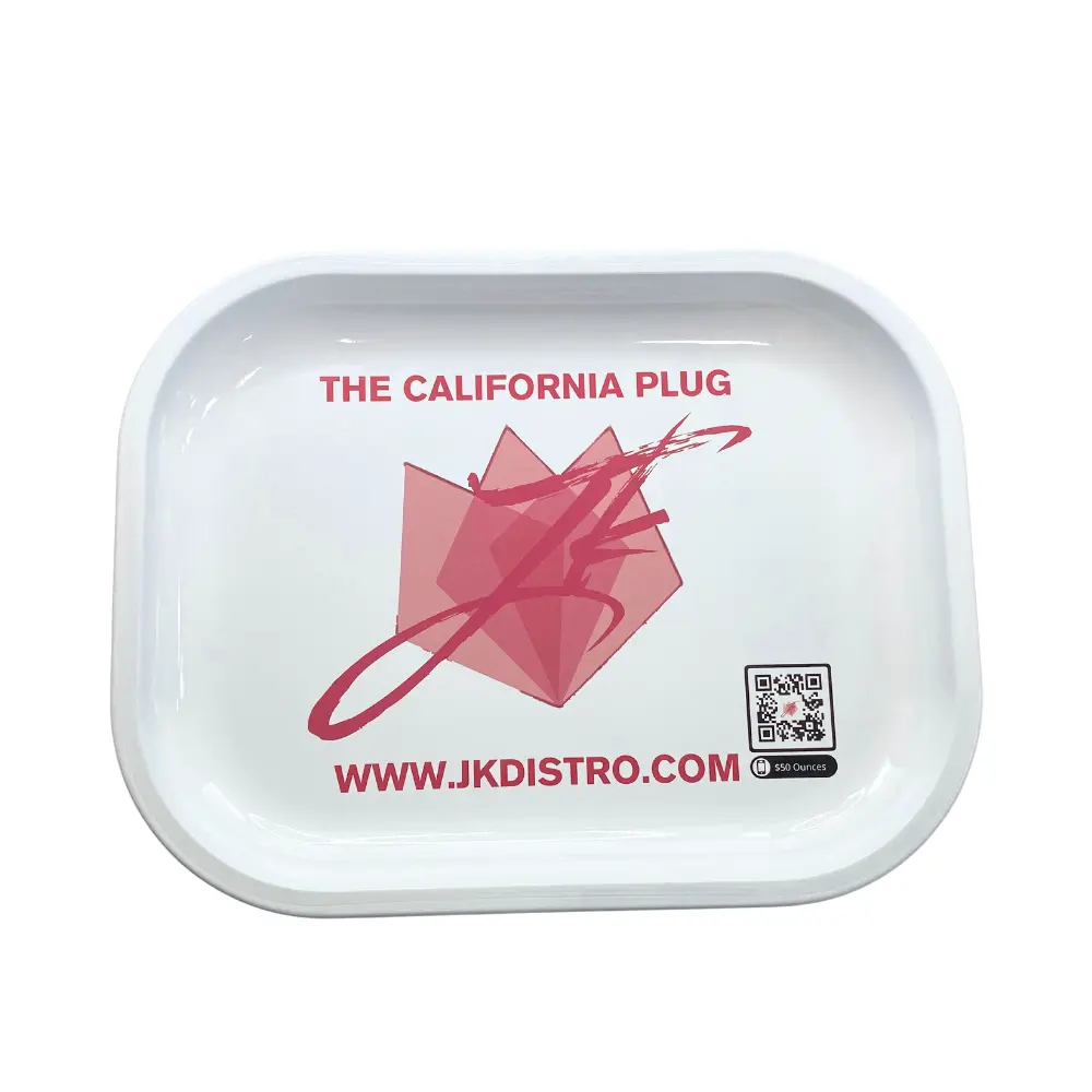 The JK Distro Rolling Tray is an essential tool for CBD enthusiasts. This compact tray provides a smooth and sleek surface for organizing and rolling your favorite CBD flowers, whether at home or on the go. Featuring rounded edges for easy handling and a durable design, this white tray showcases our signature California Plug design, making it a stylish addition to your routine.