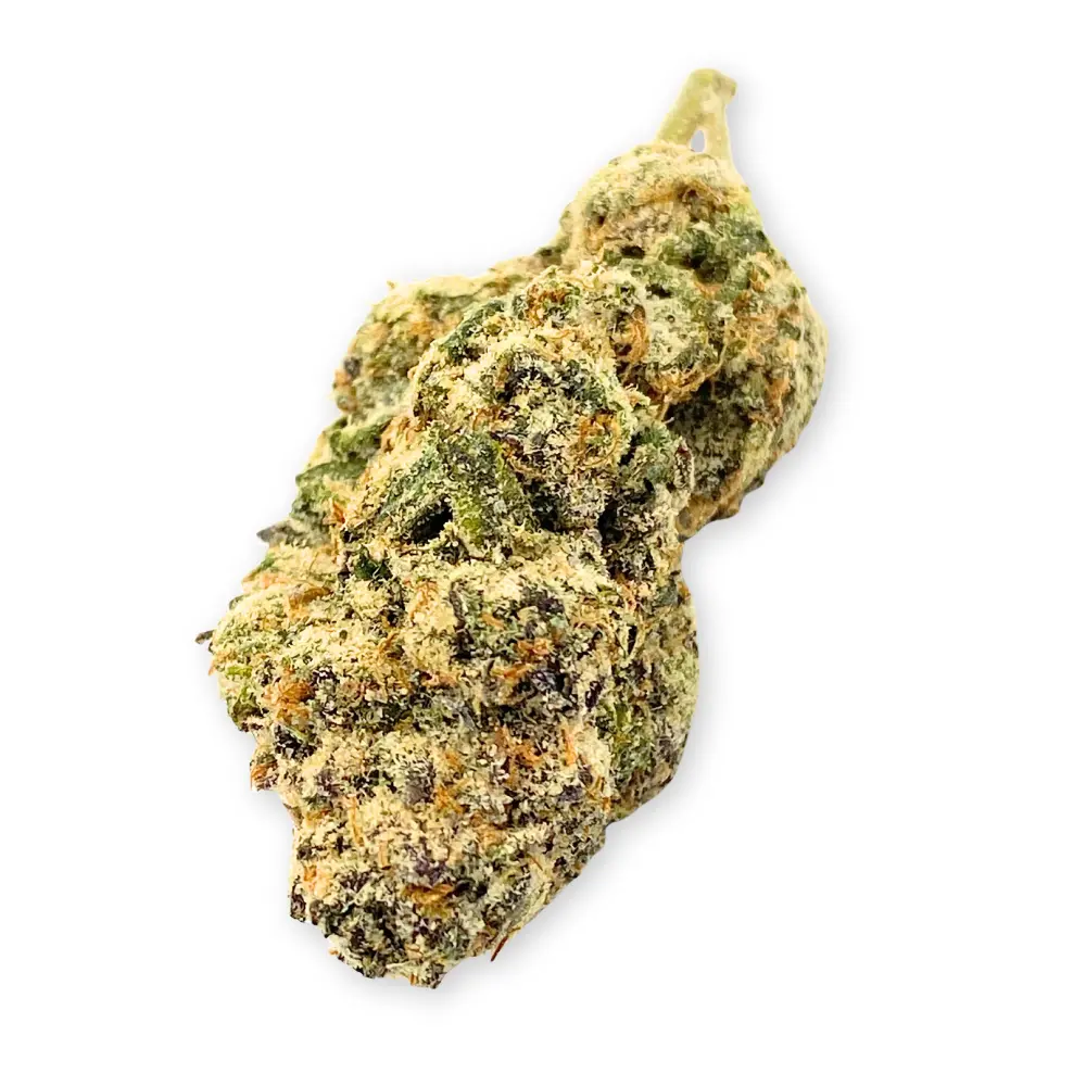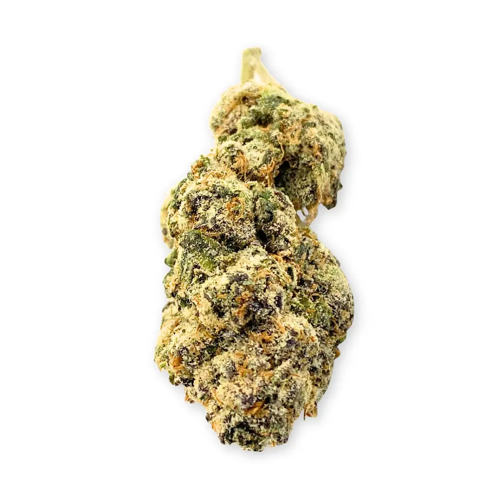 Purple Nebula is a sativa-leaning hybrid known for its cosmic blend of sweet grape, floral aromatics, and sharp citrus zest. Its flavor bursts with tart berry and grape sweetness rounded by subtle earthy notes. Visually, the buds are striking—deep purple and lavender tones contrast with bright greens and a heavy layer of sparkling trichomes. Testing at 28.67% THCa and 25.81% total cannabinoids, Purple Nebula stems from exotic sativa genetics crossed with select indica varieties, creating a vibrant, complex hybrid with dynamic flavor and standout bag appeal.