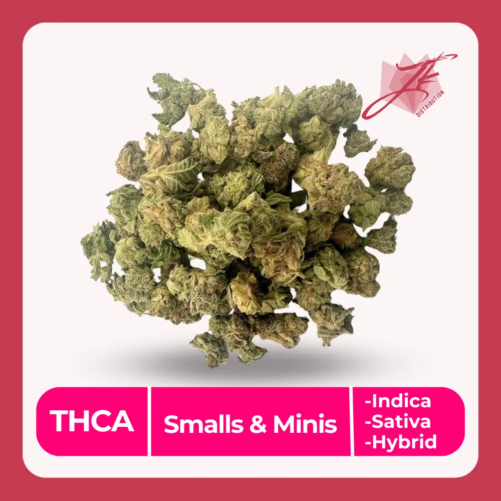 Discover THCA FLOWER SMALLS & MINI BUDS – a constantly updating range of budget-friendly options from both our regular and black label top-shelf flowers. Perfect for those looking for variety without the price tag.